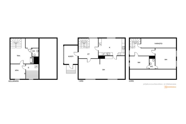 - Pinta-alatiedot on saatu rakennuspiirustuksista, eikä niitä ole tarkistusmitattu, joten ne saattavat poiketa todellisista pinta-aloista.
