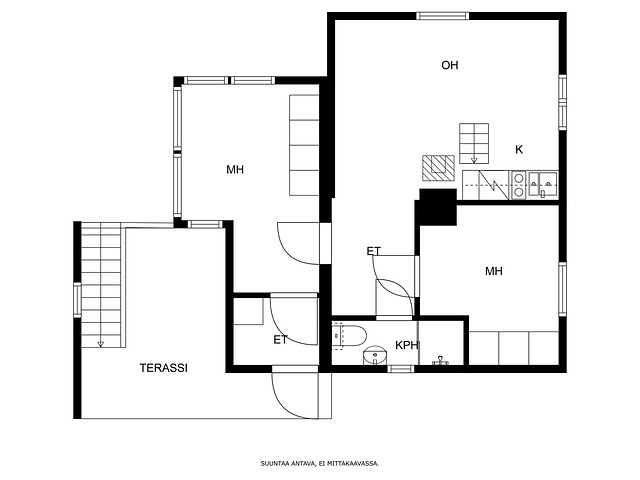 Olohuone/keittiö yhdistelmä, mh, kh + työhuone