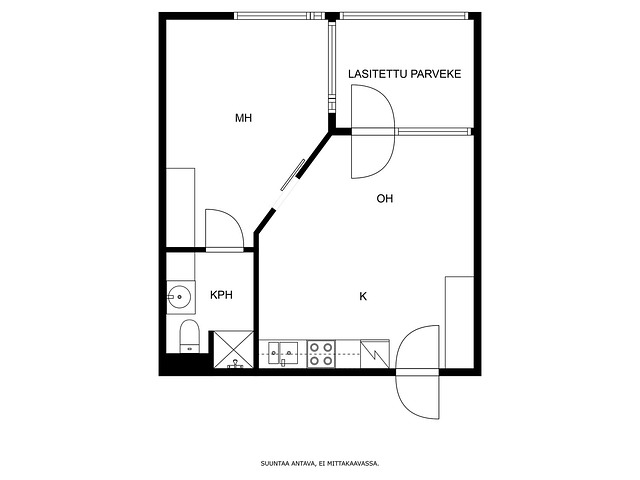 tupakeittiö, mh, kph, parveke (yj 1h+tupak)