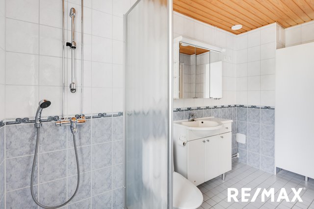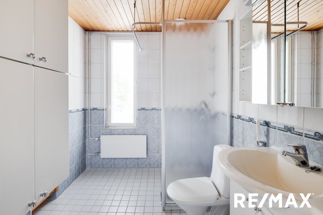- WC-istuin, suihku, suihkuseinä, pesukoneliitäntä, peilikaappi, allaskaappi, ja bidee-suihku