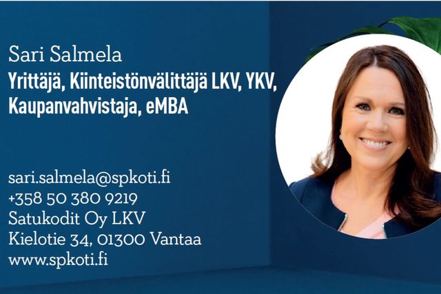 Tätä asuntoa myy Sari Salmela, Yrittäjä, ylempi kiinteistönvälittäjä LKV, kaupanvahvistaja, eMBA