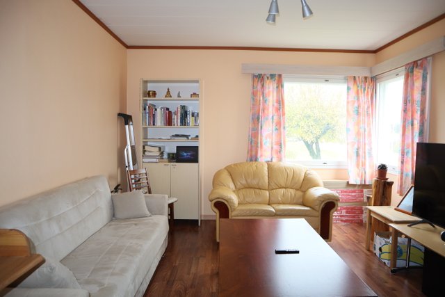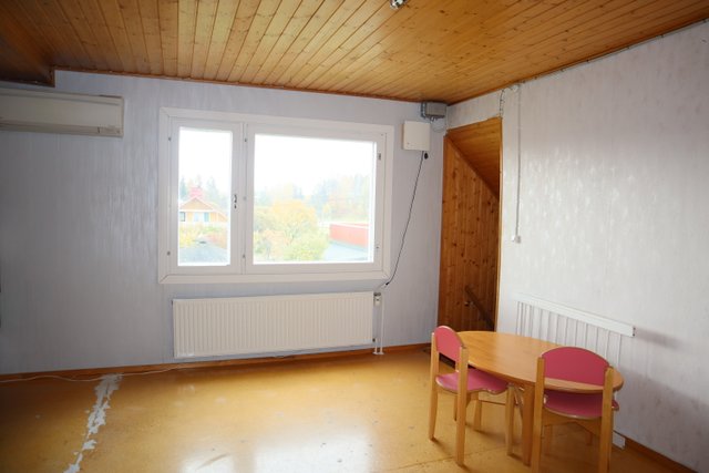 - Alakerran asuintiloissa laminaatti tai laatta, yläkerrassa muovimatto/levy.