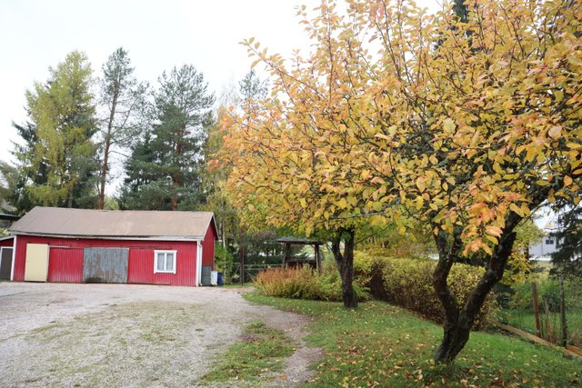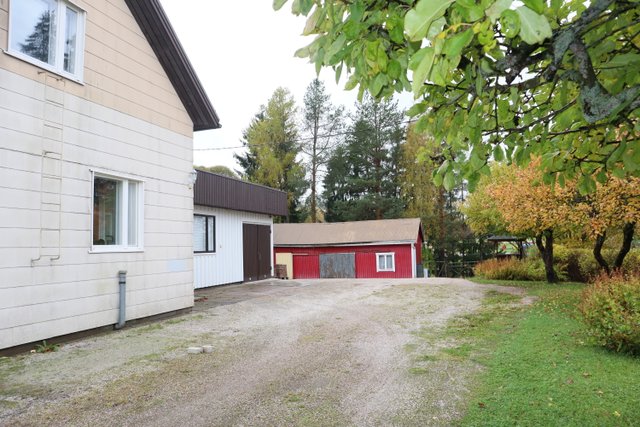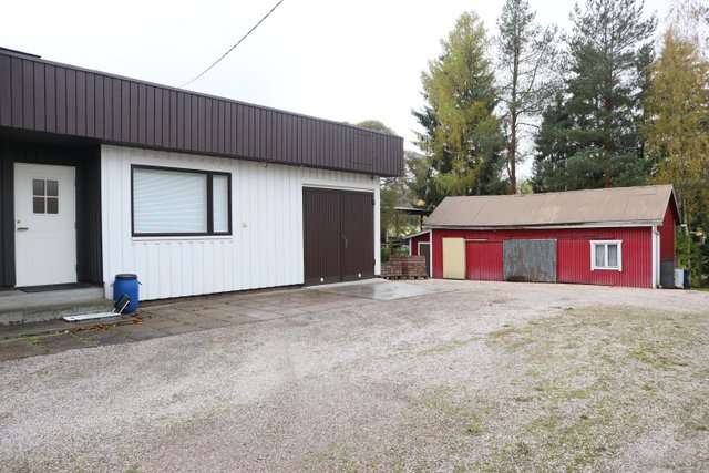 Pihassa myös reilunkokoinen talousrakennus, jossa autotalli ja varasto- sekä liiteritiloja.
