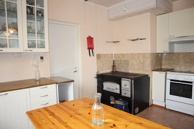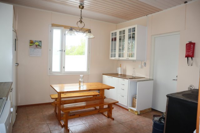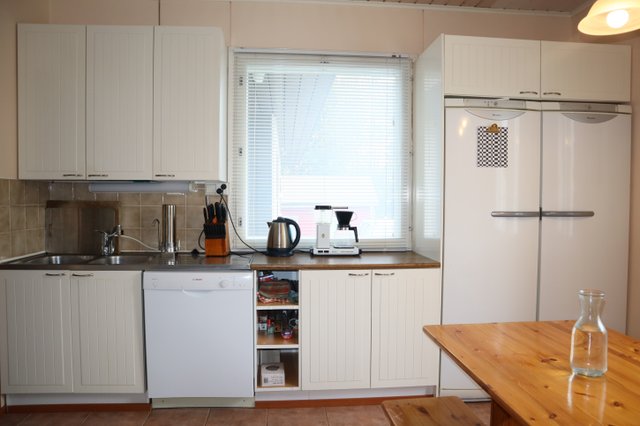 - Keittiö remontoitu 2003. Valkoiset kauniit kaapistot ja kodinkoneina täyskorkeat kylmälaitteet, astianpesukone. liesi ja liesituuletin. Keittiön sydämenä puuhella. Laattalattia.