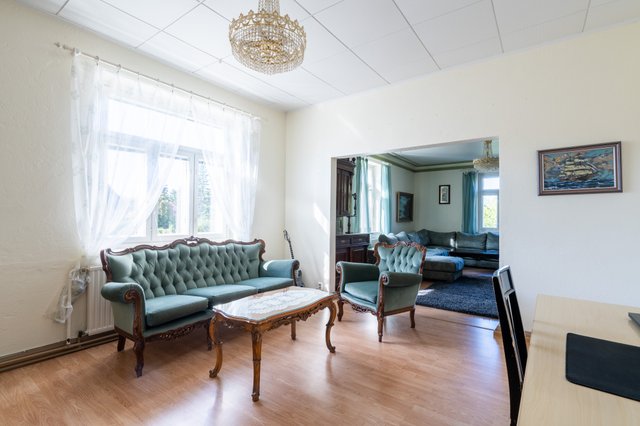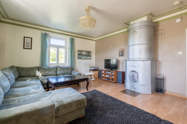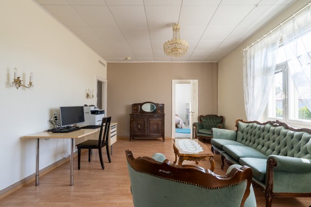 - Olohuoneen ja ruokailutilan seinäpinnat uusittu 2015. Lattia laminaattia, seinät maalattu, olohuoneen kattolistat kipsiä. Olohuoneessa alkuperäinen iso pönttöuuni.