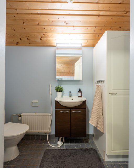 - Yläkerran erillinen wc uusittu 2010: lattia laatoitettu, pyykkikaappi, wc, bidee, allaskaapisto, peilikaappi.