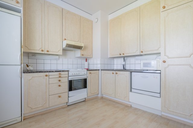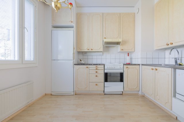 - Jääkaappipakastin, liesi, liesituuletin, ja astianpesukone
