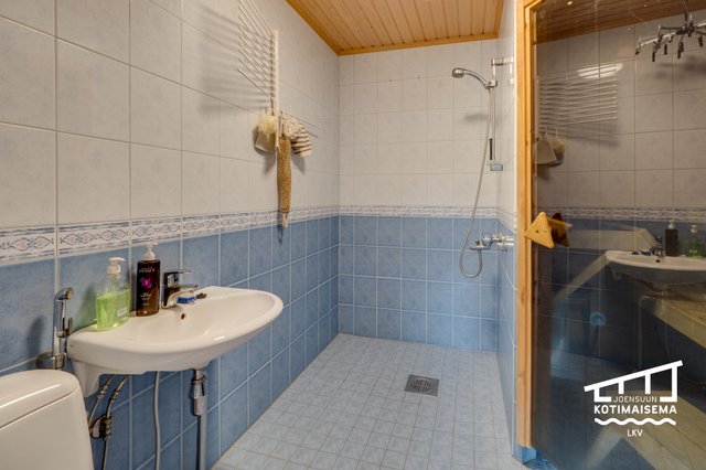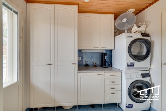 - Pesukoneliitäntä, lattialämmitys, tila pesutornille, ja lattiakaivo