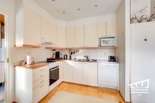 - Jääkaappipakastin, liesi, liesituuletin, ja astianpesukone