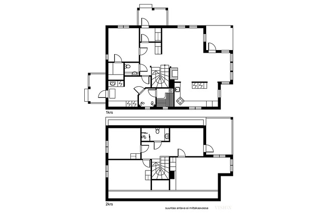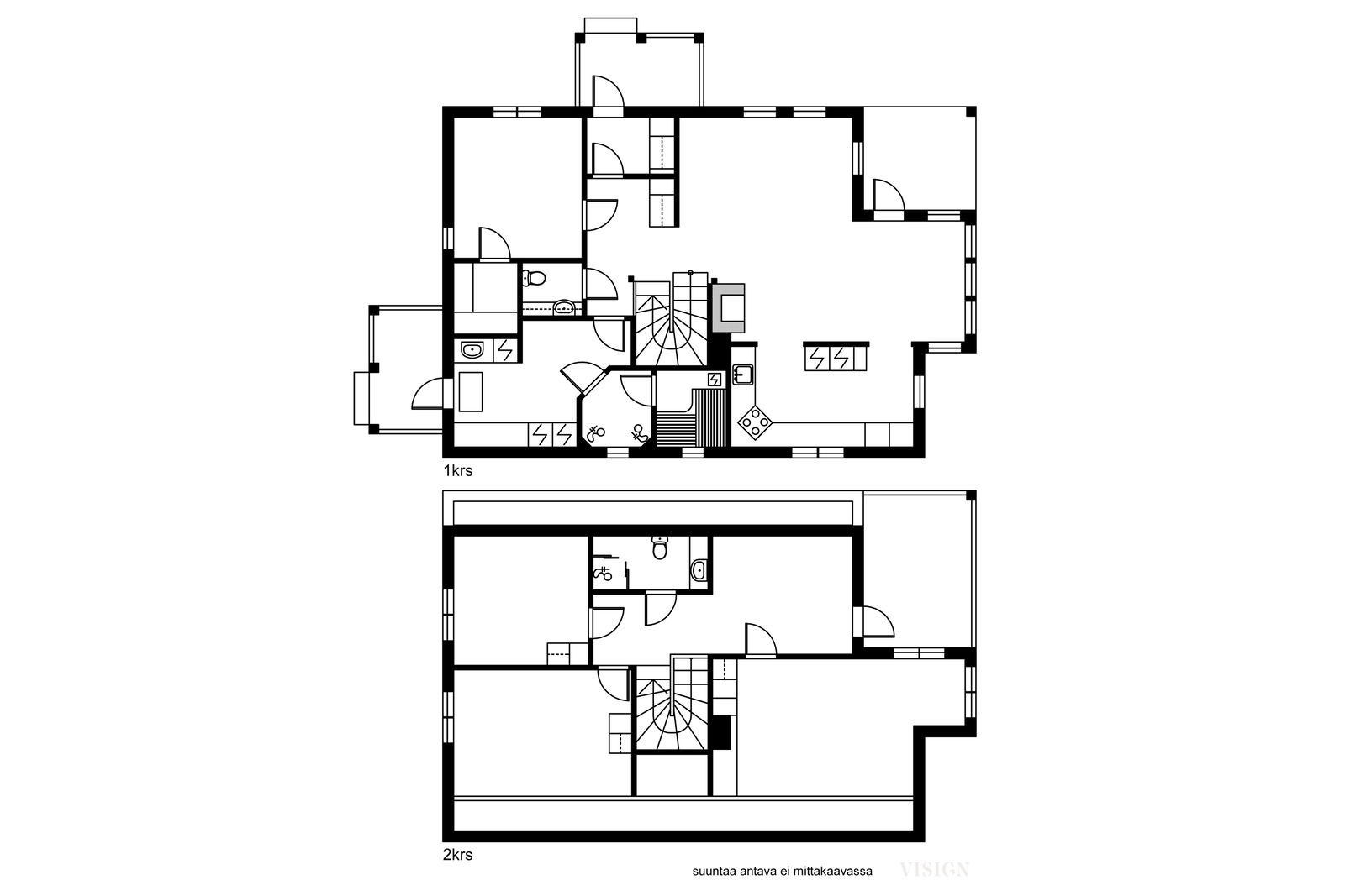 - Yläkerran kph: Lattia laatta, seinät kaakeli, suihkuseinä, lattialämmitys, wc, peilikaappi ja allaskaapistot.
