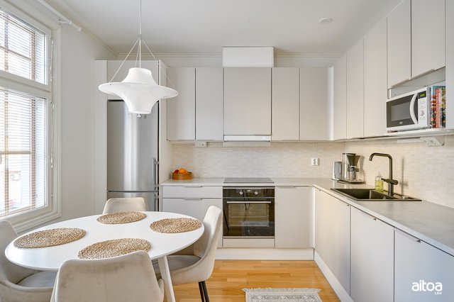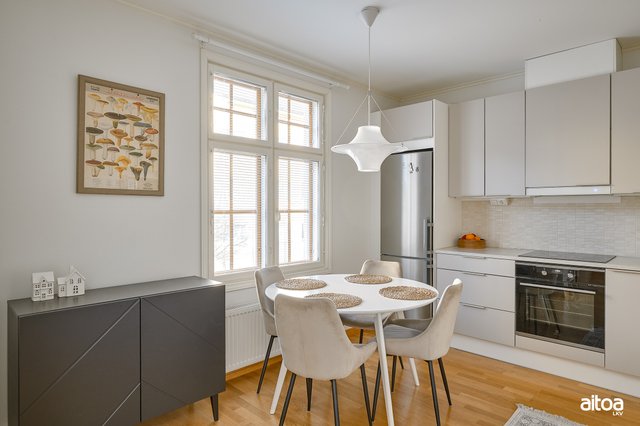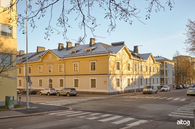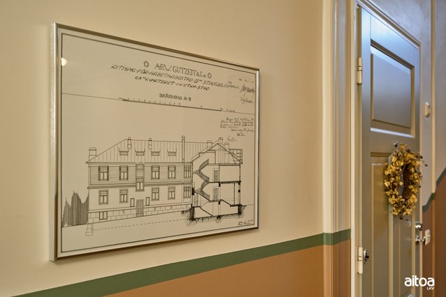 2006 täysin peruskorjatun, 1920 luvun tiili / hirsirakenteisen talon tunnelma on ainutlaatuinen. Vanhaa arkkitehtuuria kunnioittaen kunnostetun talon näyttävä huoneisto vastaa nykyajan vaatimuksia. Väljä tilaratkaisu, näyttävä huonekorkeus ja ikkunoiden ristikot luovat kerrassaan hurmaavan kokonaisuuden Sinulle, joka haluat kodiltasi enemmän.