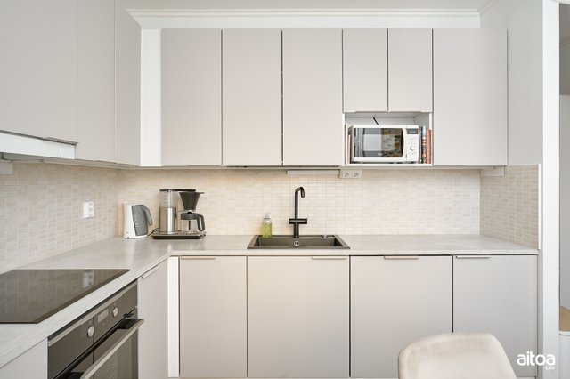 - 2021 uudistuksen läpikäynyt keittiö, jossa ovet, työtasot, alla ja hana, sekä kaikki kodinkoneet ja led-valaisus uusittu.