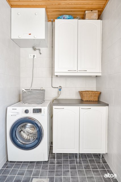 - Pesukoneliitäntä, tila pesutornille, ja kaapistot