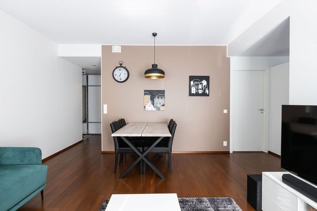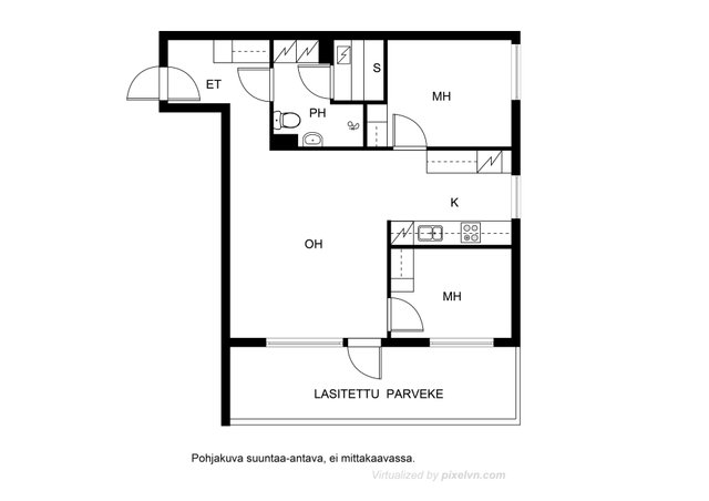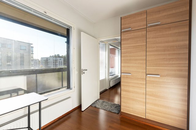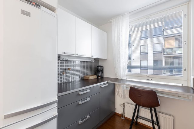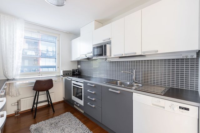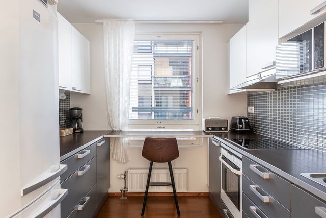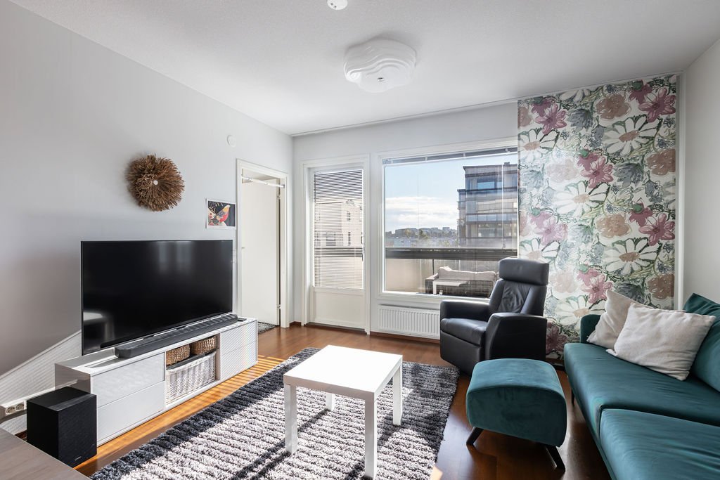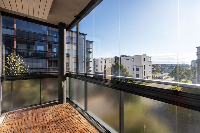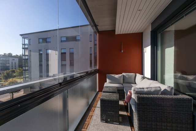 Asunnossa on tilava olohuone, joka yhdistyy saumattomasti kompaktin kokoiseen keittiöön. Keittiö on varusteltu nykyaikaisilla laitteilla, kuten keraamisella liedellä ja astianpesukoneella. Koko huoneiston levyisellä parvekkeella voit nauttia iltapäivän auringon paisteesta lasitetuksen suojassa. Oma sauna tarjoaa mahdollisuuden rentoutumiseen pitkän päivän päätteeksi.