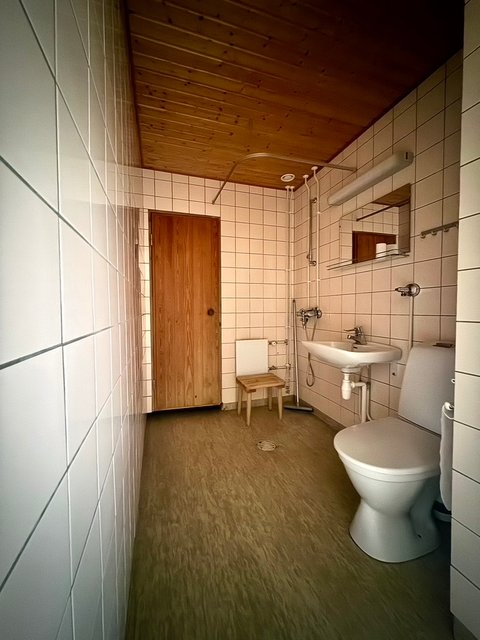 - WC-istuin, suihku, pesukoneliitäntä, peili, ja pesuallas