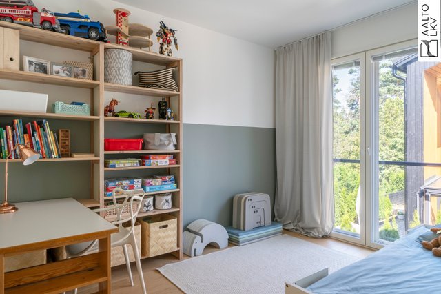 Lämmitysmuotona on poistoilmalämpöpumppu PILP. Nelihenkisen perheen kokonaissähkönkulutus viime vuonna oli 11 kWh (sisältäen hybridiauton latauksen). Asumiskulut ovat matalat.