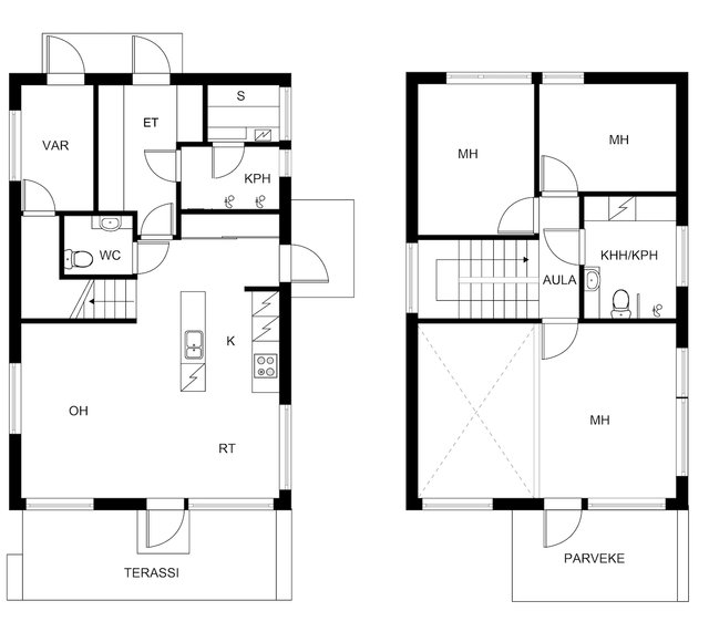 - Lämmin ulkovarasto 5 m2, kylmä pihavaja 4 m2