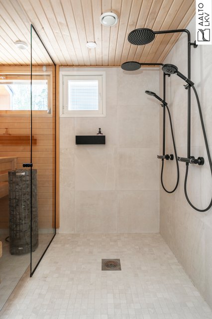 - WC-istuin, suihku, pesukoneliitäntä, ja lattialämmitys