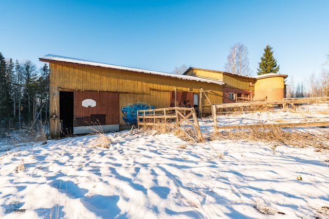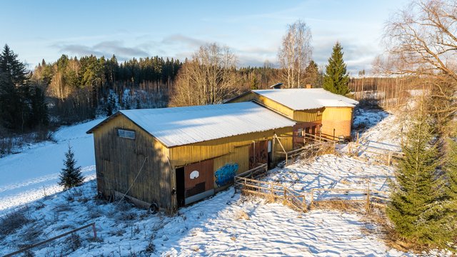 Suuri vanha navettarakennus on isolta osalta tiiltä ja hyvin ryhdikkäässä kunnossa. Valmiita karsinoita kolme kappaletta. Tässä olisi todella hyvää tilaa hevosten pitoon. Ympäristö houkuttelee maastoilemaan.