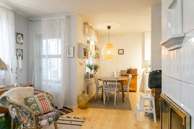 En riktig pärla på första plan i Apotekaren! Denna lägenhet är en inbjudande trerummare med ståtligt trägolv, mysig vedspis, hög innertakhöjd, stora fönster och inglasad balkong. Bostadsbolaget är prydligt och välskött samt befinner sig på ett fantastiskt ställe intill Floraparken och ån, omgiven av idylliska gamla trähus. Biltakplats tillhör med egna aktier. Med en ytrenovering i egen smak får ni detta till ert drömhem. En unik chans att bli lägenhetsägare i ett av Nykarlebys vackraste lägenhetshus, tag kontakt för mer information och visning!