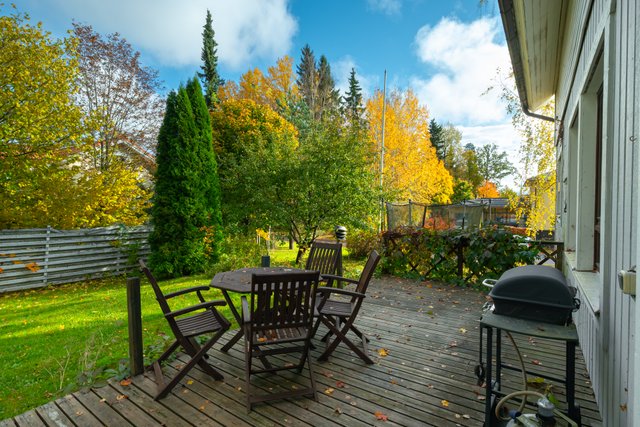 - Vehreällä pihalla mahtuu leikkimään, hoitamaan puutarhaa ja nauttimaan grillaamisesta perheen ja ystävien kanssa.