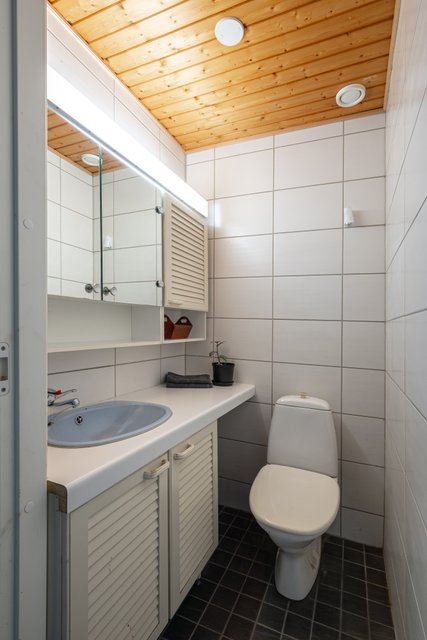 - 1. kerroksessa on erillinen wc sekä yläkerran kylpyhuoneessa on myös wc-istuin.