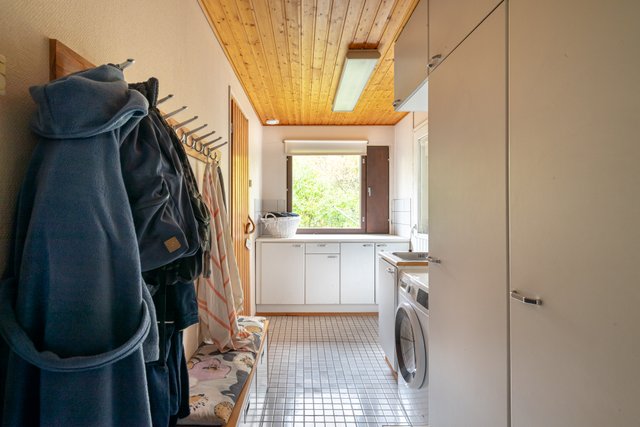 - Pesukoneliitäntä, kaapistot, ja pesuallas
