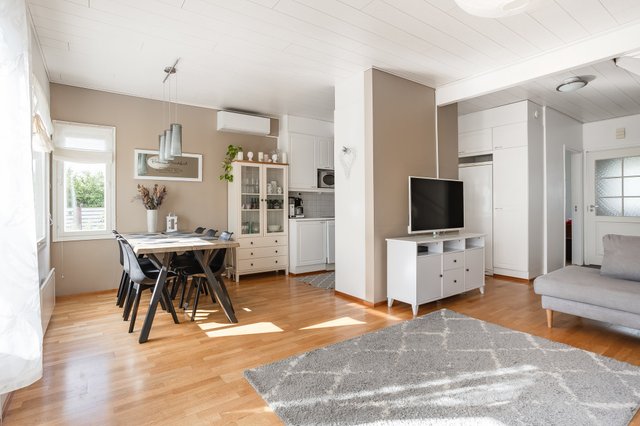 Tilava ja hyväkuntoinen koti hyvämaineisella, etenkin lapsiperheiden suosimalla asuinalueella. Lyhyt matka palveluihin, hyvät ulkoilumahdollisuudet ja nopeat liikenneyhteydet.