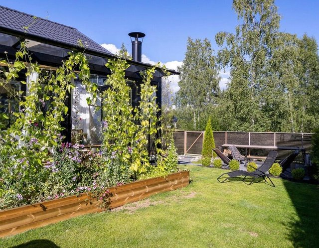 - Ulkoporeallas, nuotiopaikka, istutuslaatikot hyötypuutarhalle, sähköautonlatauspistoke.