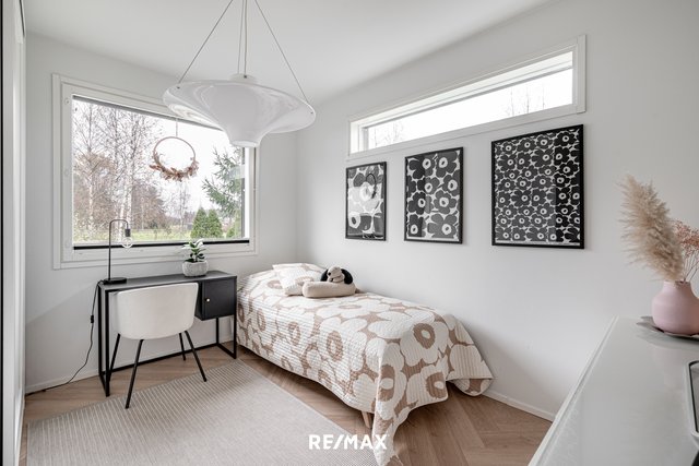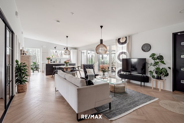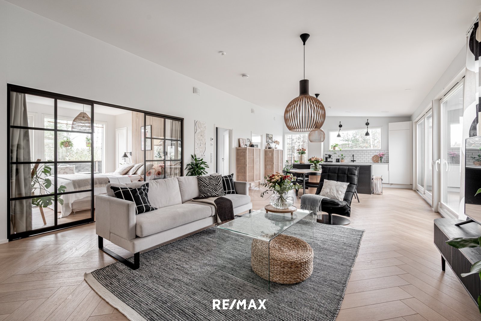 Noin 110 m² huolella suunniteltua asuintilaa muodostavat toimivan kokonaisuuden. Avoin olohuone-/keittiötila, kolme makuuhuonetta, saunallinen kylpyhuone, erillinen wc sekä kodinhoitohuone, joka toimii myös kätevänä arkieteisenä. Kodin lämmitysjärjestelmästä vastaa maalämpö sekä lisäksi erillinen viilennysjärjestelmä takaavat miellyttävän sisäilman ympäri vuoden.
