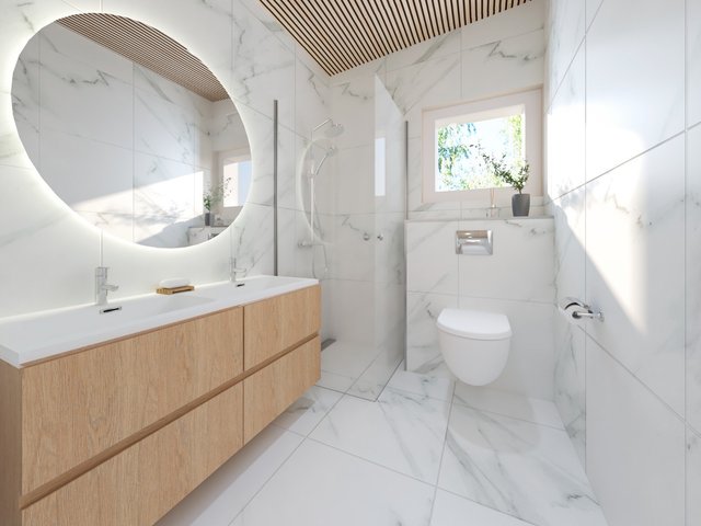 - WC-istuin, suihku, suihkuseinä, pesuallas, ja allaskaappi