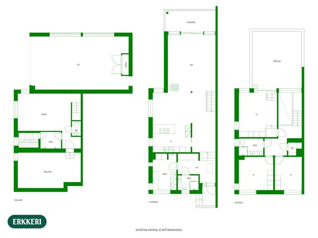 - Kerroksien pinta-alat: sisääntulokerroksessa 100,5m². Yläkerrassa 67,5m² ja kellarikerroksessa 101m².