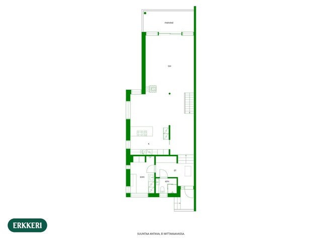 - Yläkerrassa on tilava terassiparveke. Pinta-ala 26,5m².
