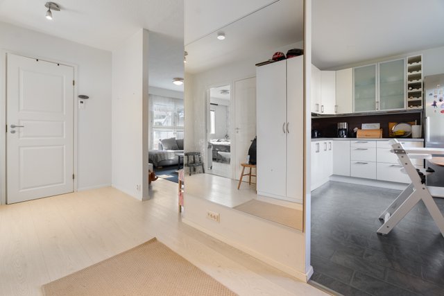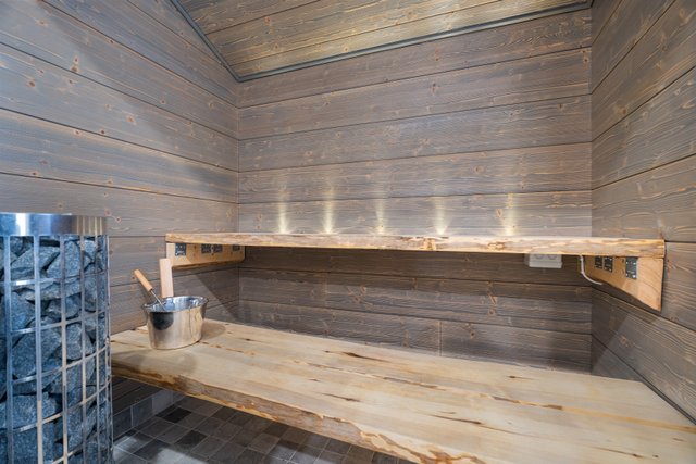 Badrummet har förnyats för bara ett par år sedan och är utrustat med egen bastu med glasvägg – den perfekta platsen för avkoppling. Två sovrum ger flexibilitet för olika boendebehov, oavsett om du är en familj, ett par eller bor ensam.