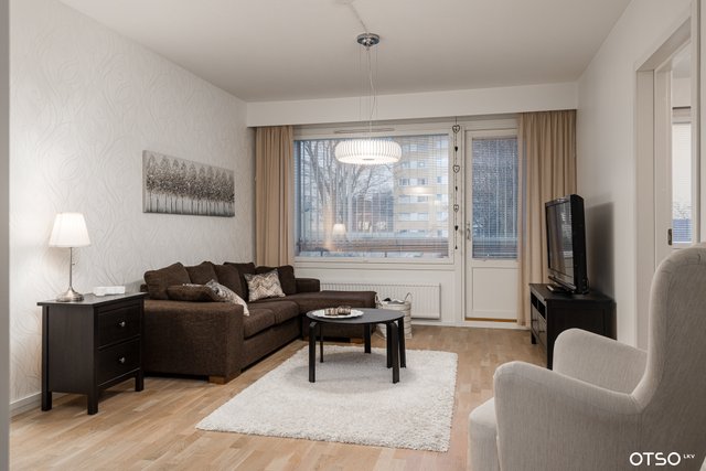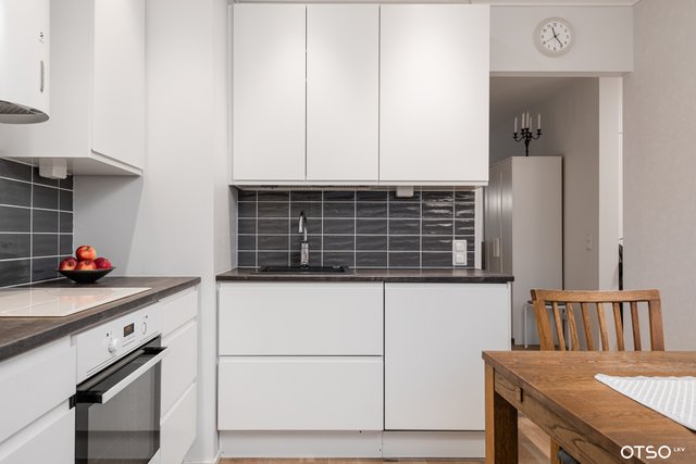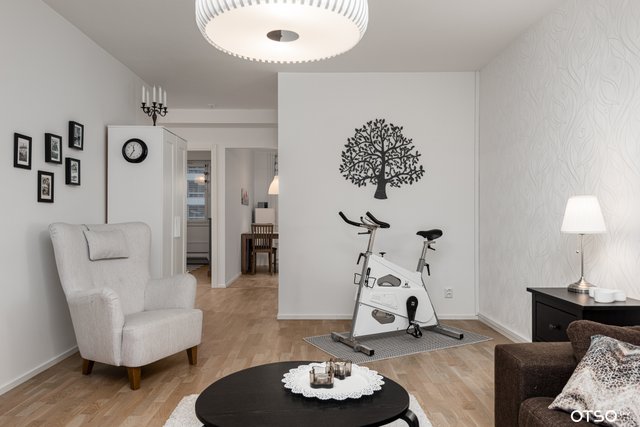 Valoisa ja avara olohuone kutsuu viihtymään, ja sieltä on käynti parvekkeelle, joka avautuu sisäpihalle. Tyylikäs, remontoitu kylpyhuone vastaa nykypäivän tarpeita ja tarjoaa kaikki mukavuudet. Keittiö on sekä kaunis että käytännöllinen: korkeat ja tilavat kaapistot, modernit laatikostot sekä reilut työskentelytasot tekevät ruoanlaitosta miellyttävää.