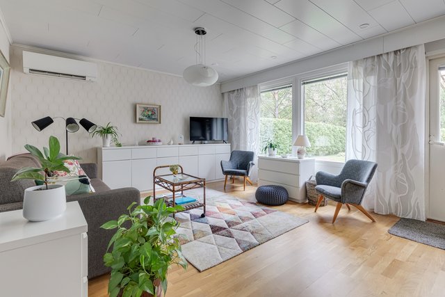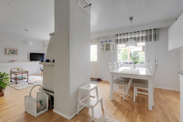 Tämän kodin sydän on ruokailutilaan ja keittiöön saumattomasti yhdistyvä olohuone. Tämä yhteinen tila on avara ja viihtyisä. Lämpöä siihen tarjoaa sähkölämmityksen lisäksi tehokkaasti ilmalämpöpumppu ja varaa vatakka. Asunnossa on lisäksi kaksi makuuhuonetta, vaatehuone, sekä nykyvaatimusten mukaisesti saneerattu pesuhuone ja sauna.