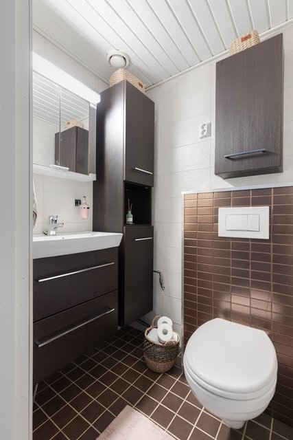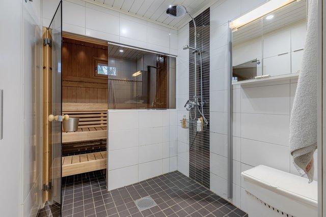 - Suihku, peilikaappi, pesukoneliitäntä, lattialämmitys, suihkuseinä, ja lämminvesivaraaja