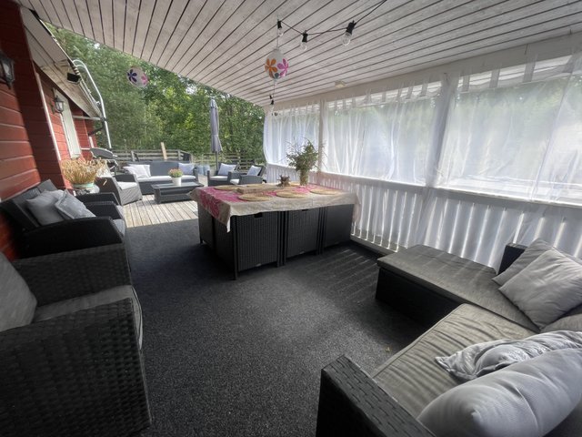 - Iso n 130m2 terassi lounaaseen, osa n 20m2 katettu