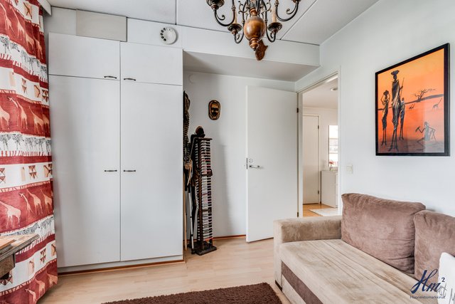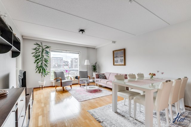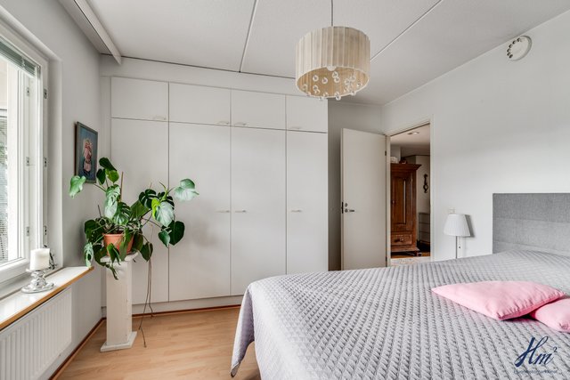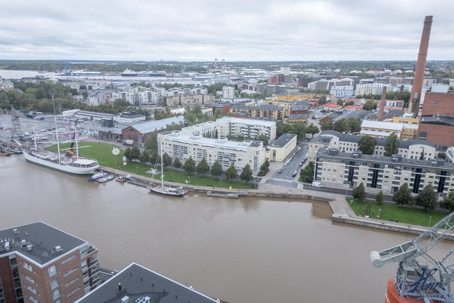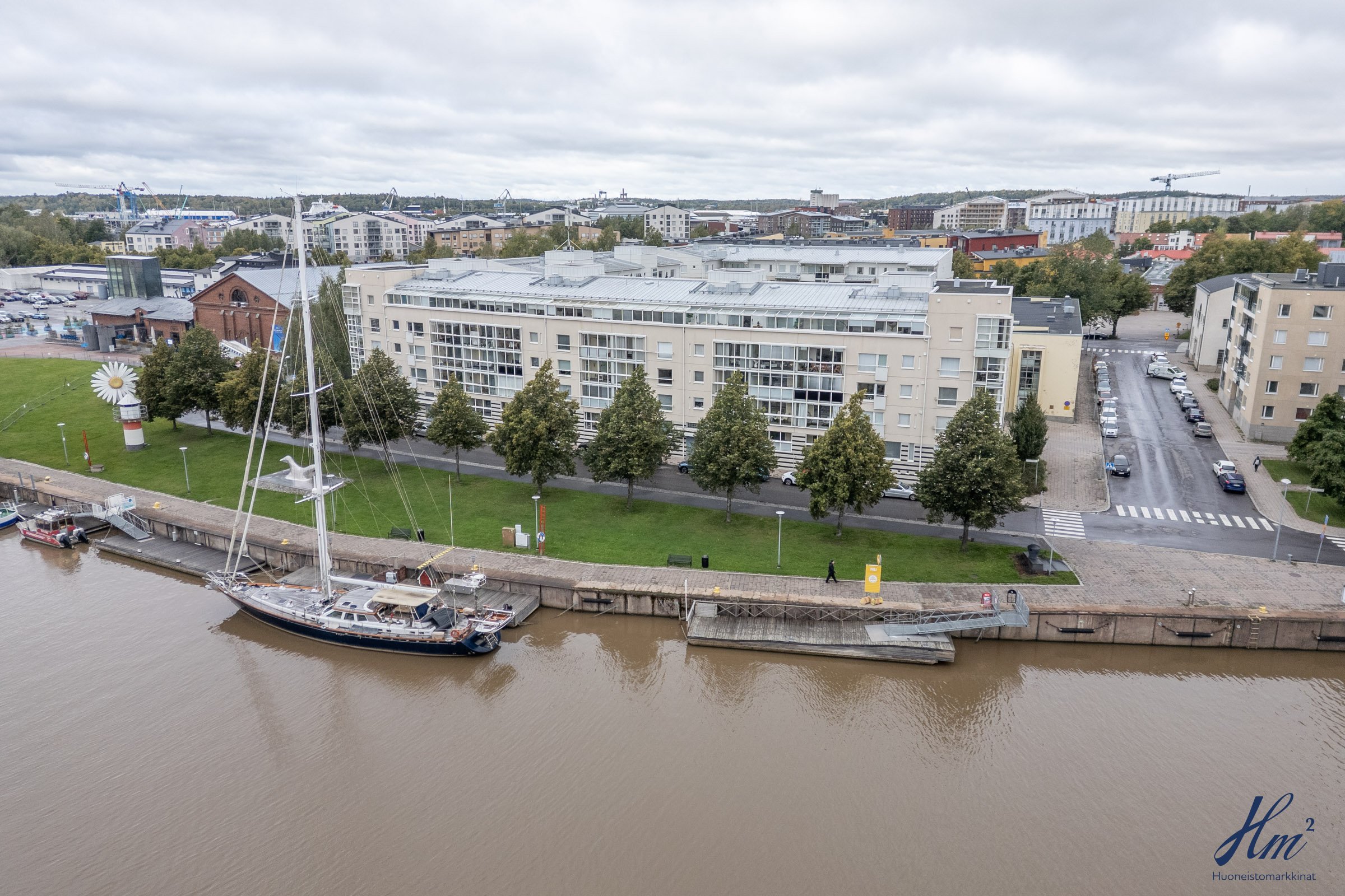 Tämä 84,5 m²:n kokoinen koti tarjoaa kaksi makuuhuonetta, olohuoneen, erillisen keittiön, kylpyhuoneen, saunan sekä lasitetun parvekkeen, jolta avautuvat suorat maisemat Aurajoelle. Parveke on kuin toinen olohuone. Paikka, jossa voi rauhoittua, seurata jokiliikennettä tai katsella auringonlaskun maalaamaa taivasta. Vuonna 1991 rakennetun talon neljännessä kerroksessa sijaitseva huoneisto on hyvässä peruskunnossa, ja pohjaratkaisu on käytännöllinen ja selkeä, ja säilytystilaa löytyy muun muassa vaatehuoneesta.