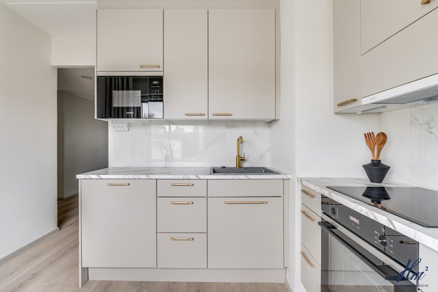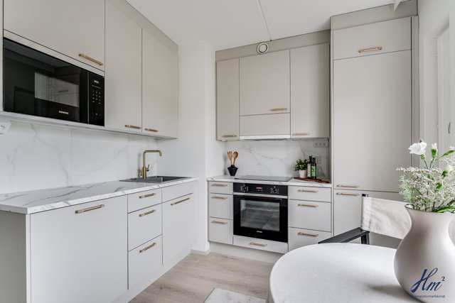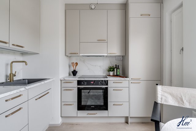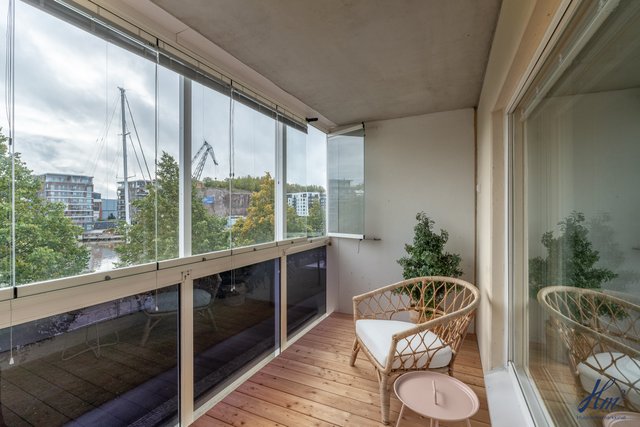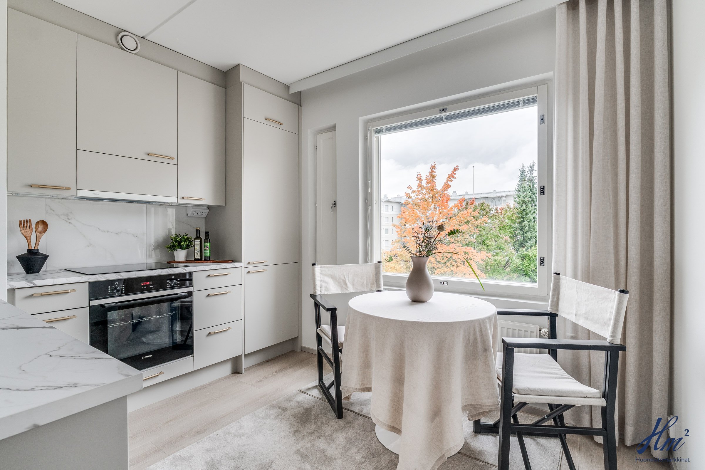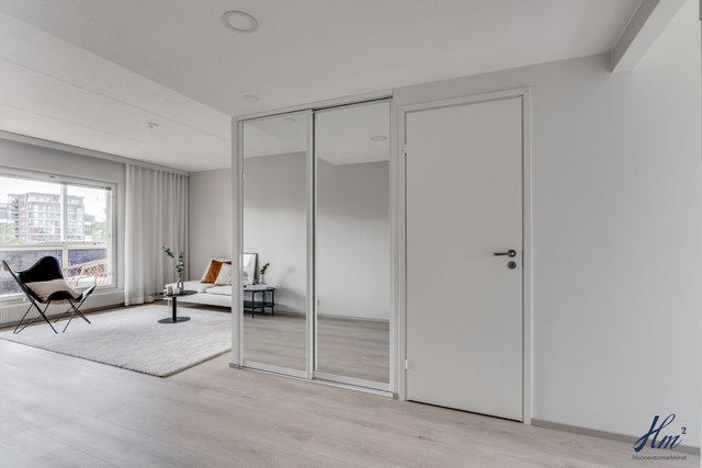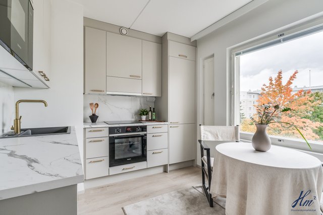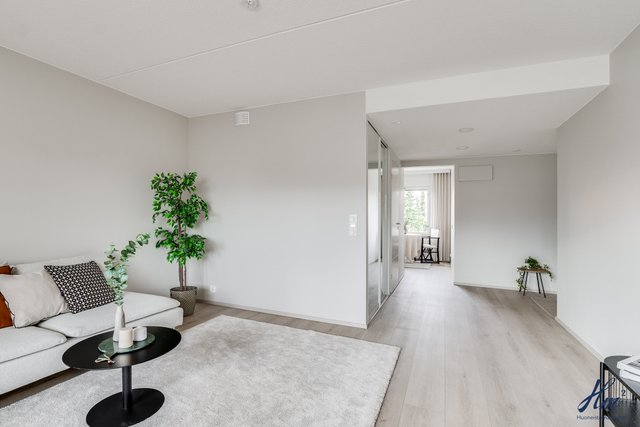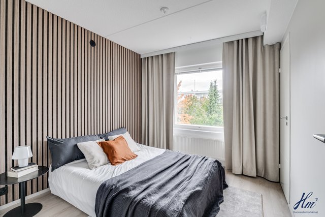 Huoneisto on vasta remontoitu ja remontissa on panostettu yksityiskohtiin. Laattapisteen laatat, saaristomalliset väliovet ja harmoninen värimaailma luovat kokonaisuuden, jossa arki saa ripauksen luksusta. Saunan tunnelma, äänieristystä makuuhuoneessa ja viilennystä tuova ilmalämpöpumppu lisäävät asumismukavuutta.