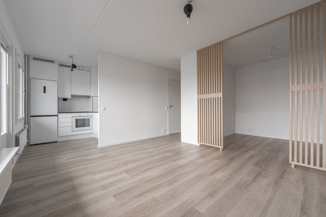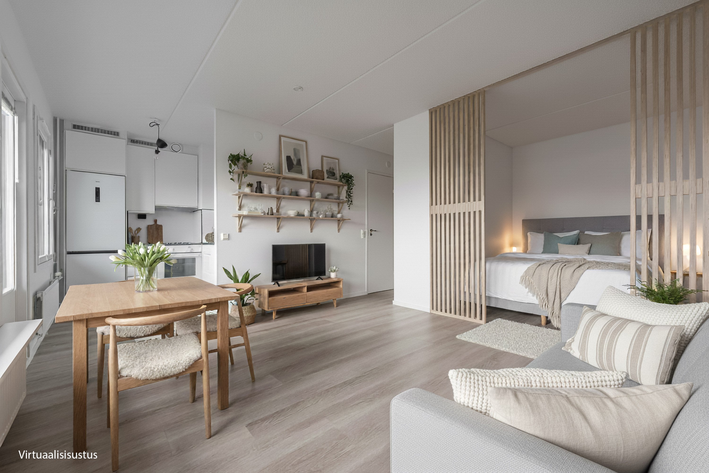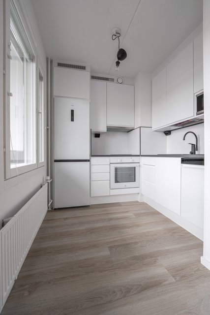 Asunnon keittiö on täysin uusittu vuonna 2025 ja varustettu nykyaikaisilla laitteilla, kuten induktioliedellä ja astianpesukoneella. Olohuoneessa on tyylikäs vinyylilattia ja ilmalämpöpumppu, joka takaa mukavan sisäilman ympäri vuoden. Kylpyhuone ja sauna on myös uusittu, ja ne tarjoavat arjen luksusta lattialämmityksellä.