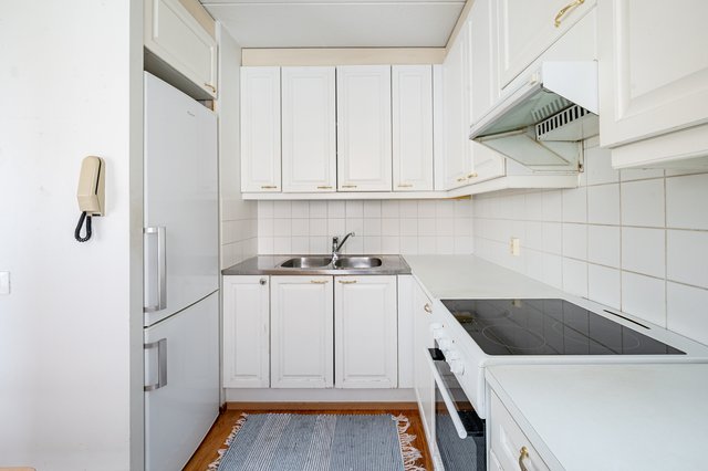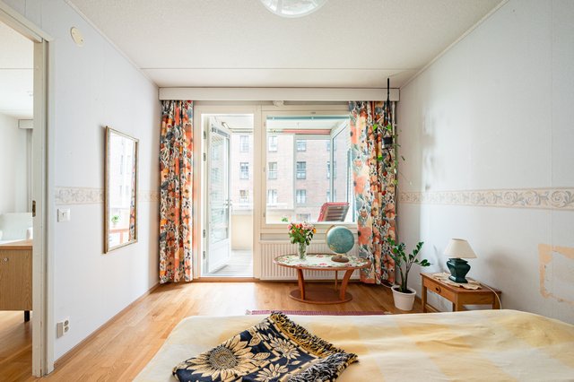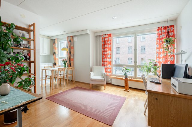 Asunto sijaitsee rauhallisessa taloyhtiössä, jossa on suuri korttelipiha ja modernit mukavuudet, kuten hissi ja kaapeli-tv. Asunnon olohuone ja avokeittiö muodostavat yhtenäisen tilan, joka on helppo sisustaa mieleiseksesi. Keittiössä on runsaasti kaappi- ja tasotilaa, ja sieltä löytyy kaikki tarvittava arjen kokkailuihin. Makuuhuoneesta pääset suoraan lasitetulle parvekkeelle, josta avautuvat kaupunkinäkymät – ja pilkahdus merestä.
