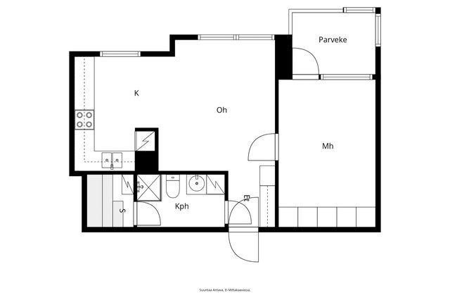 - Ei tarkistusmitattu. Pinta-alat saattavat tämän ikäisissä kohteissa (yhtiö rekisteröity ennen 01.01.1992) poiketa olennaisestikin asuinrakennusten nykyisten mittaustapojen ja standardien (SFS 5139) mukaan laskettavasta asuintilojen pinta-alasta. Pinta-ala voi siis olla edellä mainittua pienempi tai suurempi.