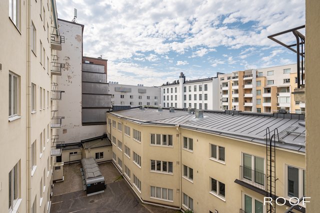 Tyylikkäästi vuonna 2018 remontoitu ja tilava neljännen kerroksen toimivapohjainen yksiö Hietalahdessa avarin sisäpihanäkymin odottaa uusia asukkaitaan.