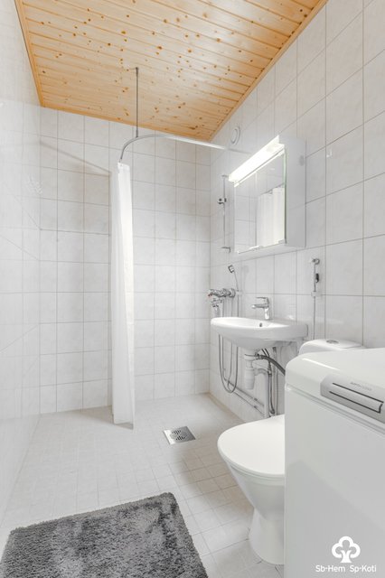 - WC-istuin, suihku, pesukoneliitäntä, ja peilikaappi