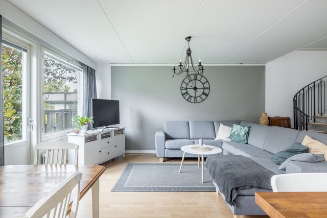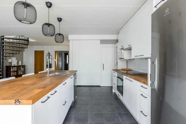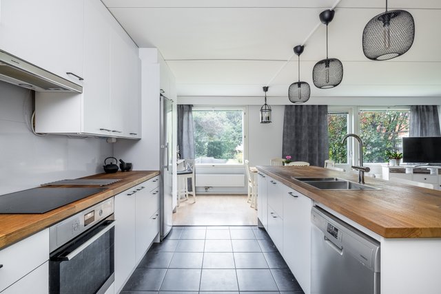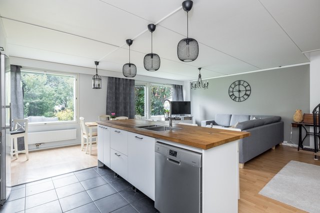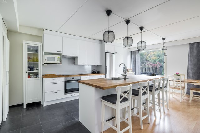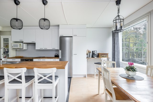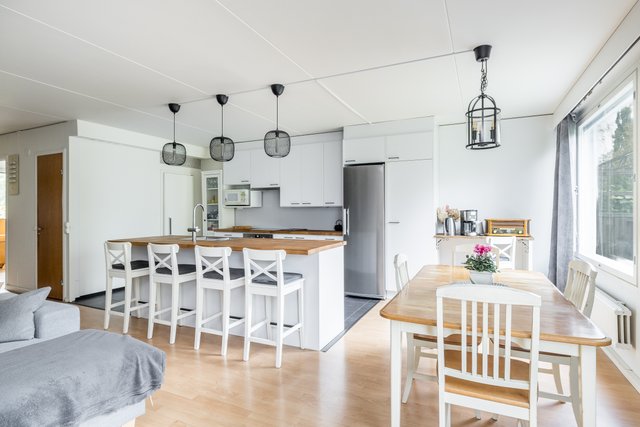Tämä tilava rivitalokoti Martinlaaksossa tarjoaa erinomaiset puitteet perhe-elämälle. Asunto on kahdessa kerroksessa ja sen 147 neliötä tarjoavat tilaa ja valoa isommallekin perheelle. Tässä kodissa on peräti viisi hyvänkokoista makuuhuonetta, avokeittiö ja olohuone, josta kulku omalle suojaisalle takapihalle. Kodin pintoja on uusittu 2021, joten tähän kotiin voit muuttaa ilman remonttihuolia. Keittiön saareke, puutasot ja vaaleat pinnat rosterikoneineen tekevät ruoanlaitosta nautinnon.