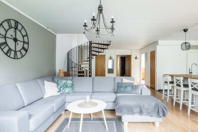 Asunnon sauna, parveke ja tilava terassi tuovat arkeen ripauksen luksusta, ja oma piha tarjoaa mukavan paikan lasten leikeille tai rauhalliselle oleskelulle. Kylpyhuone on varustettu kaikilla tarpeellisilla mukavuuksilla, ja iso vaatehuone sekä erillinen wc lisäävät arjen sujuvuutta.