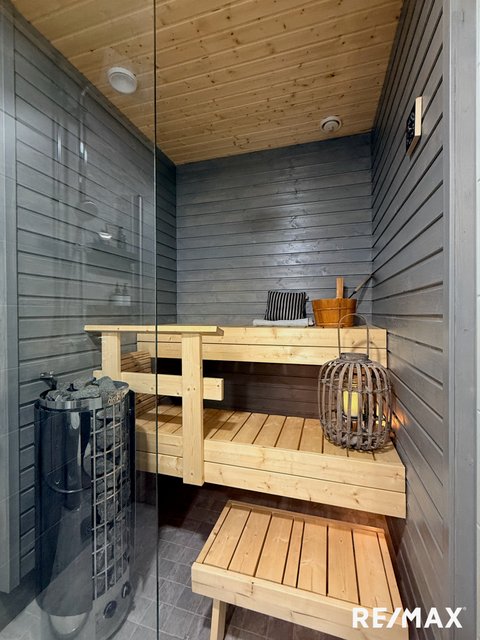 Asunnosta löytyy kaksi erikokoista makuuhuonetta, jotka tarjoavat rauhalliset puitteet lepoon. Kylpyhuone on kuin oma pikku spa, jossa voit rentoutua saunan löylyissä. Saunan lasiseinä tuo tilaan tyylikkyyttä ja valoisuutta. Lisäksi asunnossa on valtava n. 20 m² lasitettu parveke, joka tarjoaa viihtyisät näkymät ja runsaasti lisätilaa oleskeluun. Sinne mahtuu niin sohvaryhmä, kuin pöytä ruokailuun.