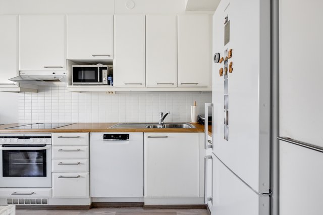 - Jääkaappipakastin, liesituuletin, ja astianpesukone