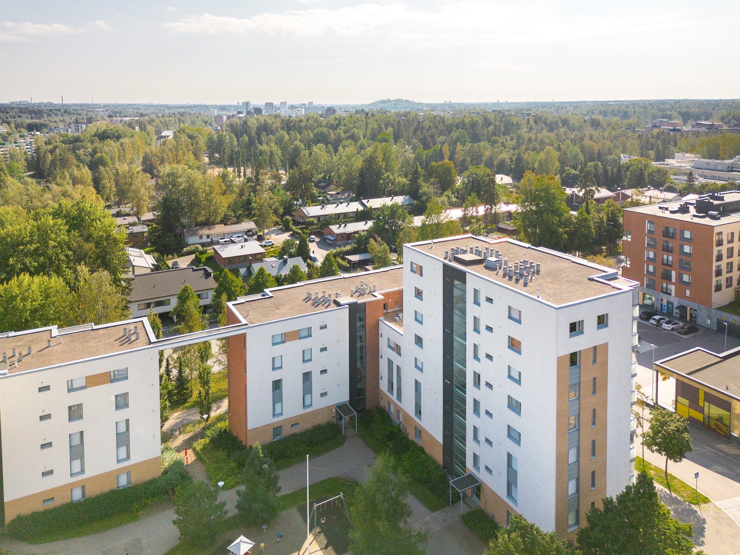 Vehreät, avarat näkymät etelään. Kaikki alueen palvelut ovat lähikortteleissa. Liikenneyhteydet ovat erinomaiset. halusit sitten Helsingin keskustaan tai lentoasemalle. Oma tontti. Hyvin ylläpidetty yhtiö.